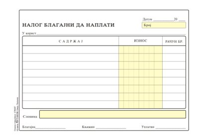 1. Naziv artikla: nalog blagajni da naplati A5 NCR