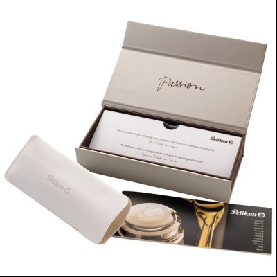od visokokvalitetnog materijala na bazi smole; prugasti materijal je napravljen od pamuka na osnovu formule razvijene specijalno za Pelikan; potrebno je mesec dana dok se blok sa prugama ne završi, nakon čega se oplata po meri savija i seče u konturu korišc´enjem prirodnog dijamanta; karakteristični dvostruki prstenovi se zatim integrišu u poklopac i cev sa najvec´om preciznošc´u; olovka se zatim polira dok ne dostigne briljantan sjaj; klipsa i dekorativni prsteni su pozlaćeni 24 karatnim zlatom; pritisni mehanizam; mina 0,7 mm; poklon kutija sa kožnom belom futrolom G30
