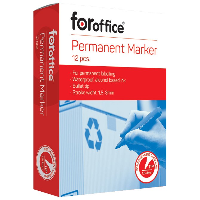 okrugli vrh; širina ispisa 1,5-3mm; za pisanje, isticanje i označavanje na svim materijalima (staklo, metal, plastika, drvo...)