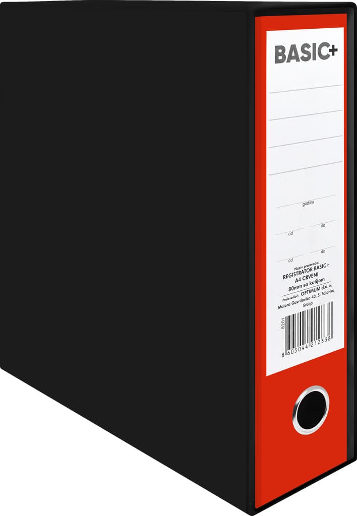 Potreban ti jeregistrator? Nudimo ti Basic registrator A4, široki sa crnom kutijom i uloškom u boji.