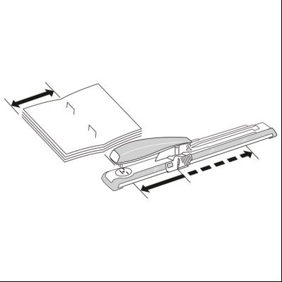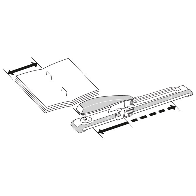 stona; spaja do 40 listova papira 80 g/m2 ili 4 mm debljine; (graničnik za formate: od A6 do A2 sa skalom u inčima i milimetrima); spajanje: otvoreno i zatvoreno klinasto: klamerice: 150 kom x br.24/6 ili 210 kom x br.26/6; garancija 10 godina