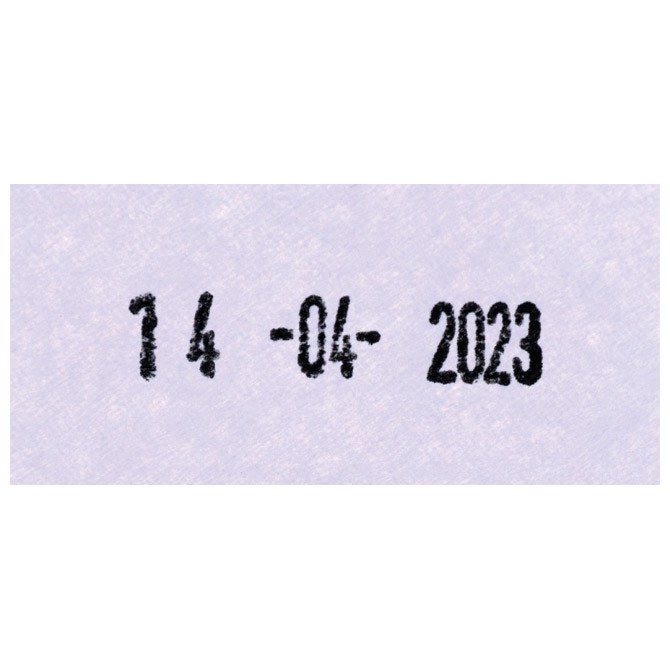 gumeni, boja mastila: crna; visina datuma 4 mm; format datuma dd-mm-gggg; napravljeno od ABS plastike; osnova protiv klizanja