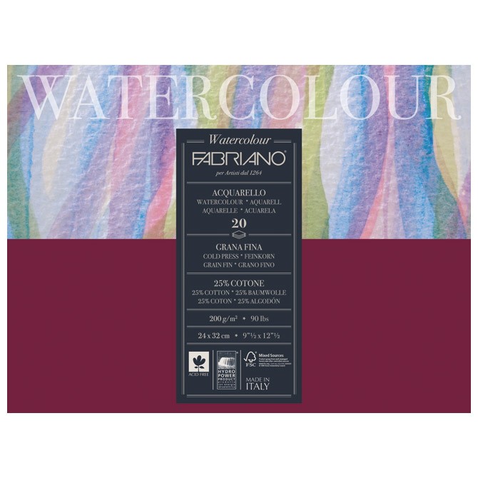 Blok Watercolour 24x32cm 20L 200g (cold pressed/grana fina) Fabriano 72612432
