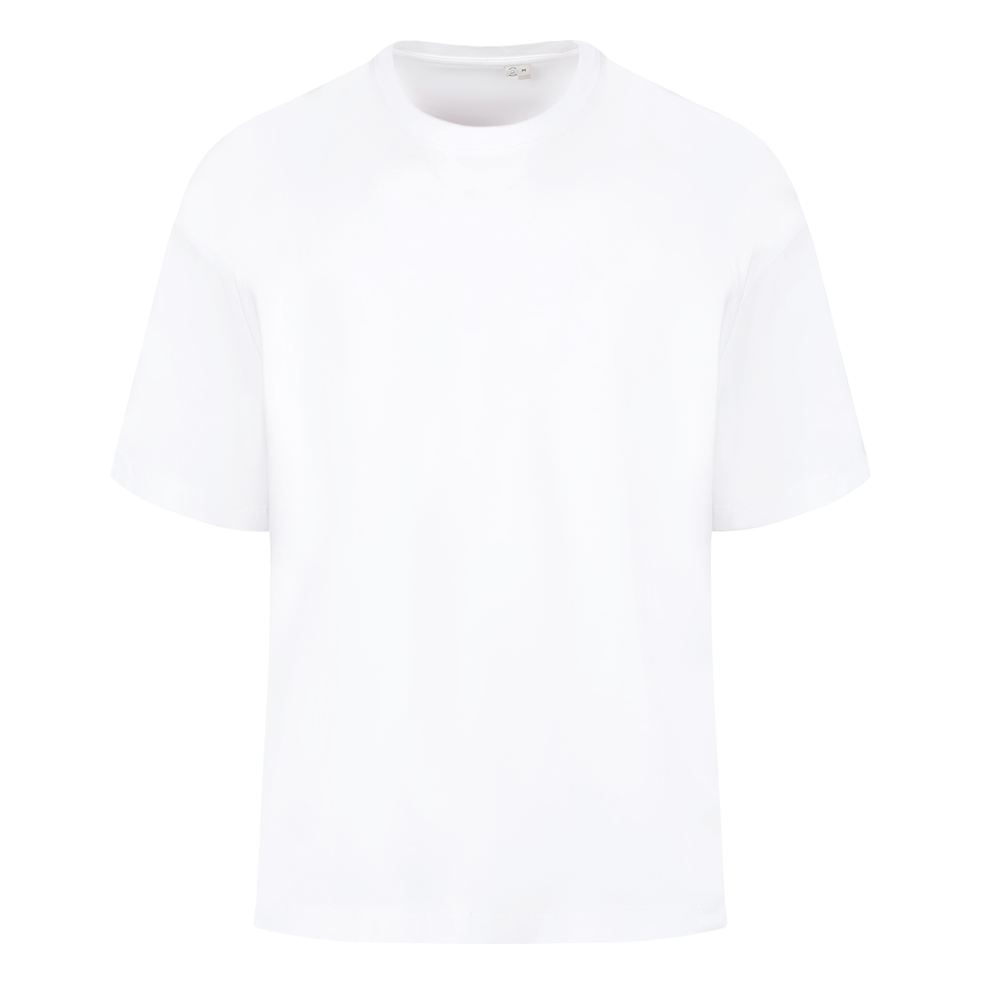 Široka majica, 220 g/m2, šivena sa strane, dupli štepovi na renderu, rukavima i dnu, dodatni štep duž ramena, okovratnik ojačan trakom