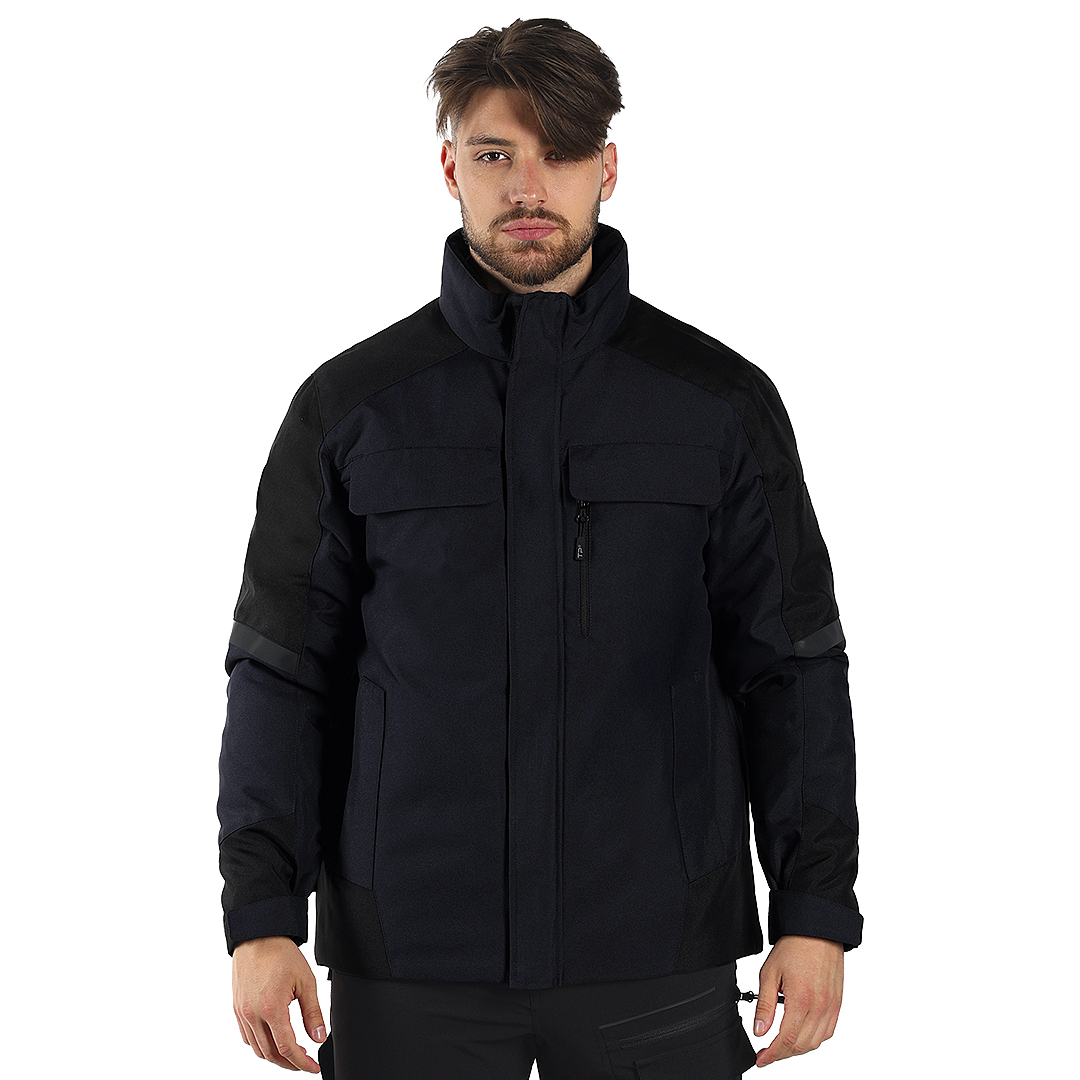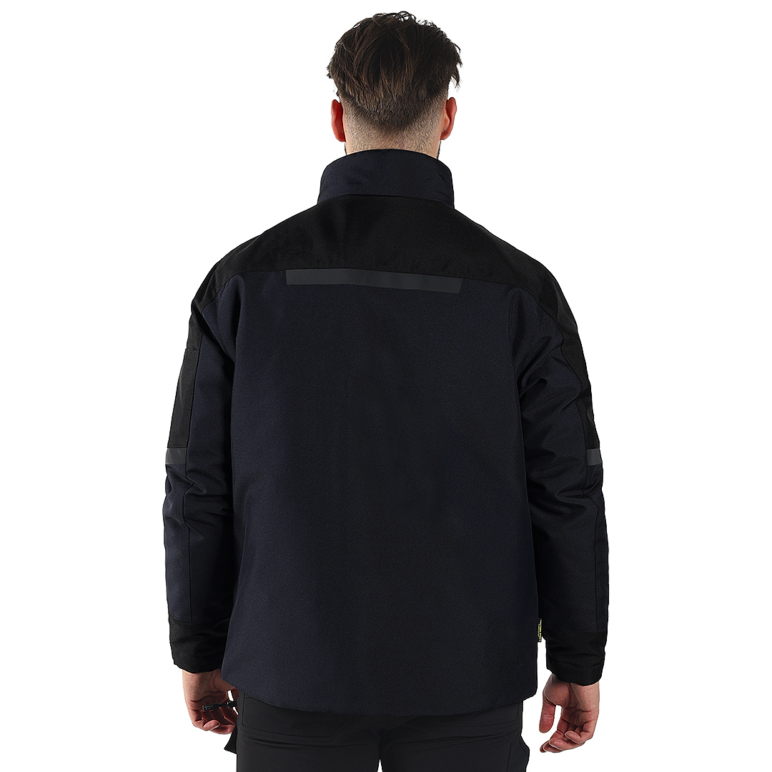 Radna jakna sa visokom kragnom, elastične ranfle oko rukava sa čičak trakom za podešavanje širine rukava, tri džepa na grudima, dva prednja džepa, unutrašnji džep za tablet, reflektivni detalji