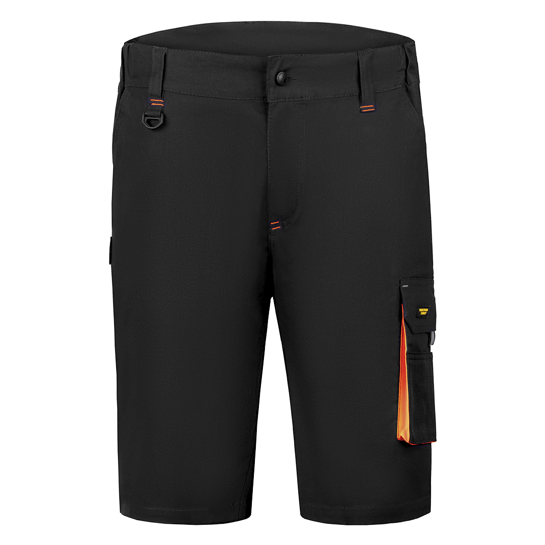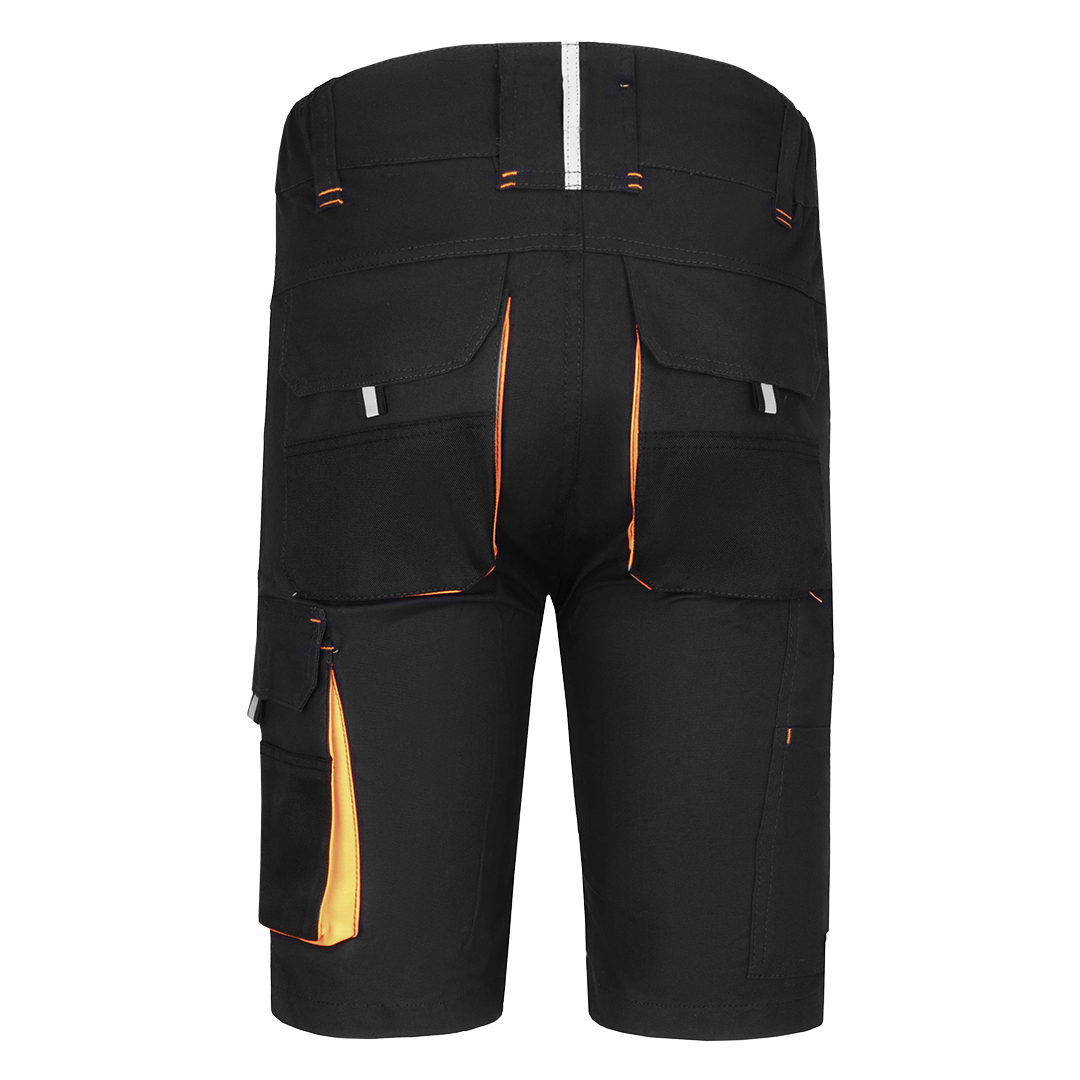 Radne bermude • Materijal: pamuk / poliester sa elastinom • Gramatura: 260 g/m² • Ojačanja: 600D poliester (džepovi) • Delimično elastičan pojas • Džepovi: 2 prednja + 2 zadnja + 2 bočna • Plastični D-prsten • Reflektivni detalji • Trostruki štepovi • SAB rajsferšlusi