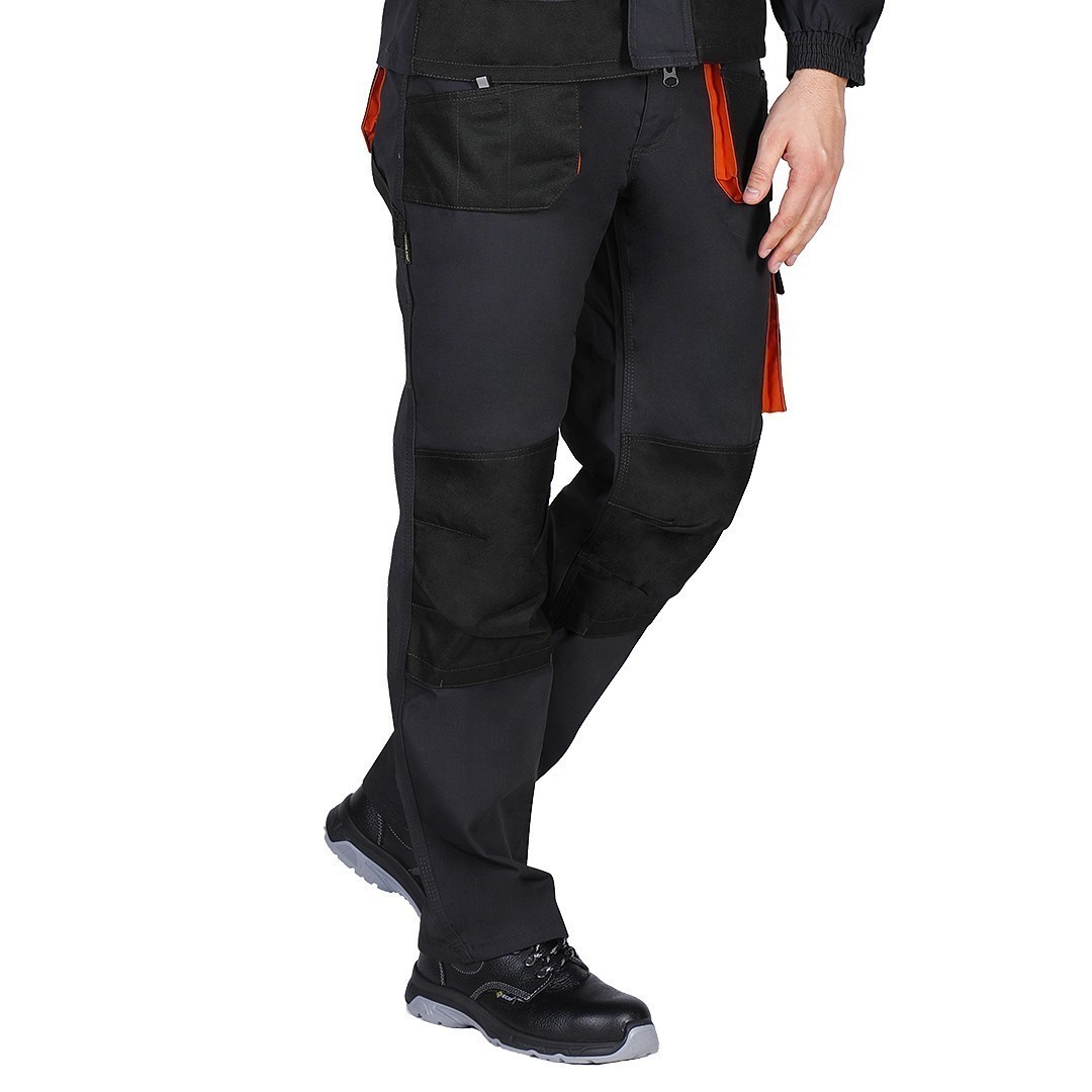Pantalone, 270gr/m2 platno prepletaj, ojačanja od 600D poliestera na mestima izloženim većem habanju (džepovi, kolena), džepovi za umetanje štitnika za kolena, dva prednja džepa, dva pozadi i dva sa strane, reflektivni detalji, praktični odeljci za alat, gajka za čekić, plastična alka za ključeve, pojas sa lastišem za dodatnu udobnost, etiketa za lične podatke unutra, trostruki štepovi i ringlice, kao ojačanje