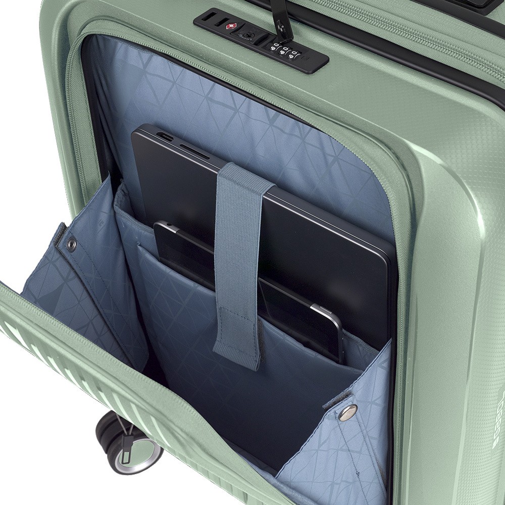Ubedljivo najbolje organozovan model kabinskog kofera za kraća putovanja. Izradjen je od polipropilena, materijala koje elastičniji i samim tim otporniji na udarce od klasičnog ABS-a. Na prednjoj strani kofera nalazi se posebna pregrada sa tri odeljka: za laptop, za tablet i poslovne dokumente koji mogu biti i poverljive sadržine. Taj deo je zaštićen o kradje sigurnosnom sajlom. Svaka polovina kofera ima sopstveno zip zatvaranje, a na jednoj se nalaze i dve dodatne zip pregrade za sitnice. Teleskopska ručka ima tri položaja, čime je omogućeno potpuno prilagođavanje po visini. TSA brava se nalazi na gornjoj strani kofera i istovremeno obezbeđuje osiguranje prednjeg pregratka uz momoć sigurnosnih sajli.