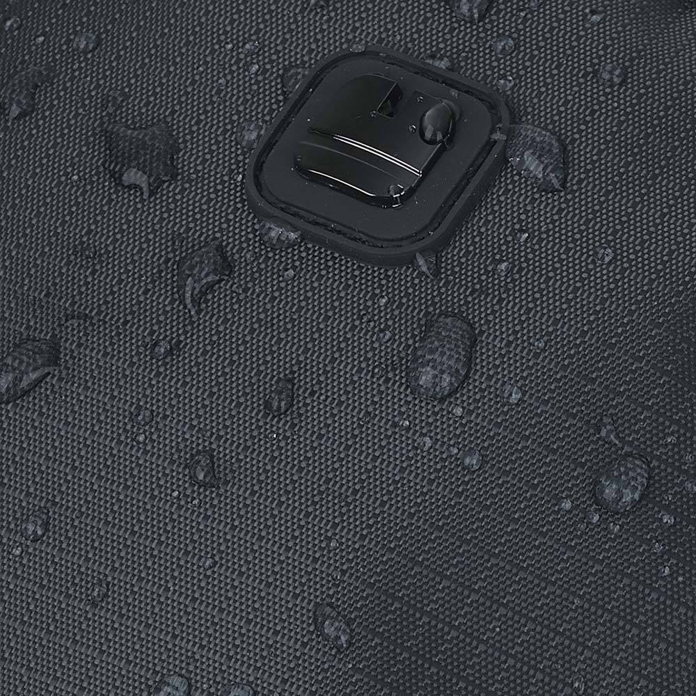 Moderna, lako uklopiva prostrana torba izrađena od kombinacije vodonepropusnog platna i materijala koji je presvučen zaštitnim gumiranim slojem. Sa prednje strane torbice je izdvojena pregrada koja se zatvara zipom.