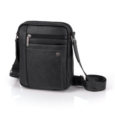 Moderna muška torbica na rame većih dimenzija, od veštačke kože izuzetne izrade. Sa prednje strane nalaze se manji i veći džep, veći se zatvara zipom. Unutar glavne i najveće pregrade sa prednje strane se nalazi manji džep, a sa zadnje veći.