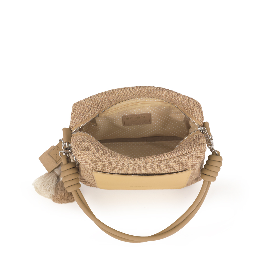 Elegantna ženska torba španskog brenda Gabol predstavlja savršen spoj prirodne estetike i savremenih materijala, idealna za prolećne i letnje odevne kombinacije. Osnovu torbe čini visokokvalitetna tekstura rafije (izrađena od izdržljivog polietilena), koja verno dočarava izgled prirodnog pruća uz znatno veću otpornost na habanje i vlagu. Dizajn je upotpunjen detaljima od fine sintetičke kože, uključujući praktičan prednji džep sa diskretnim logotipom i specifično dizajniranu naramenicu sa dekorativnim čvorovima. Unutrašnjost torbe je prostrana i obložena dezeniranom postavom sa tufnicama, sadrži dodatni džep sa patent zatvaračem za sigurnu organizaciju sitnica. Poseban vizuelni pečat daje dekorativni privezak sa drvenim perlama i kićankama. Zahvaljujući podesivom remenu, torba se može nositi preko ramena pružajući maksimalnu udobnost i funkcionalnost tokom celog dana.