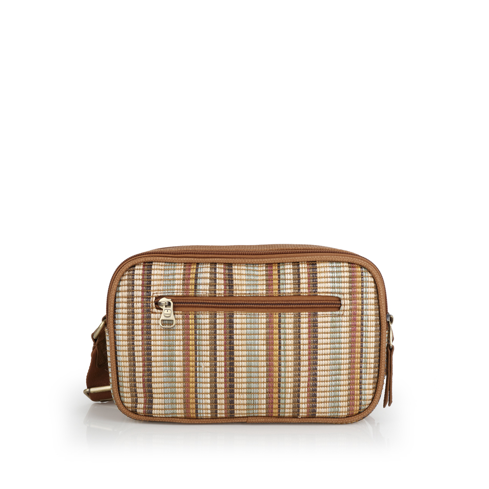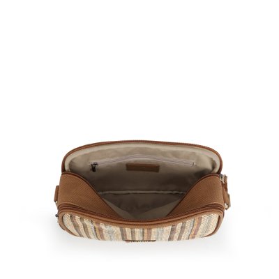 Gabol ženska torba predstavlja kompaktniju verziju popularnog dizajna sa vertikalnim prugama, idealnu za one koji preferiraju minimalizam i lakoću kretanja. Karakteriše je upečatljiv dezen u prirodnim i pastelnim tonovima, izrađen od izdržljive tkanine sa teksturom rafije koja pruža autentičan letnji izgled. Torba je dizajnirana za maksimalnu funkcionalnost u malom formatu, sa glavnim odeljkom na patent zatvarač i dodatnim zadnjim džepom za sigurno odlaganje telefona ili dokumenata. Podesivi, široki tekstilni remen u braon boji osigurava vrhunsku udobnost tokom celodnevnog nošenja, dok diskretni metalni logotip na prednjoj strani zaokružuje njenu prefinjenu estetiku. Zahvaljujući svojoj izdržljivosti i bezvremenskom stilu, ovaj model je savršen saputnik za putovanja, letnje šetnje i svakodnevne gradske obaveze.