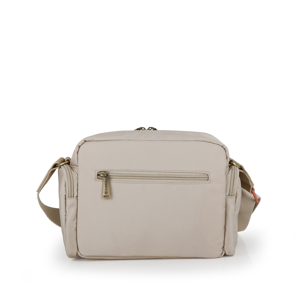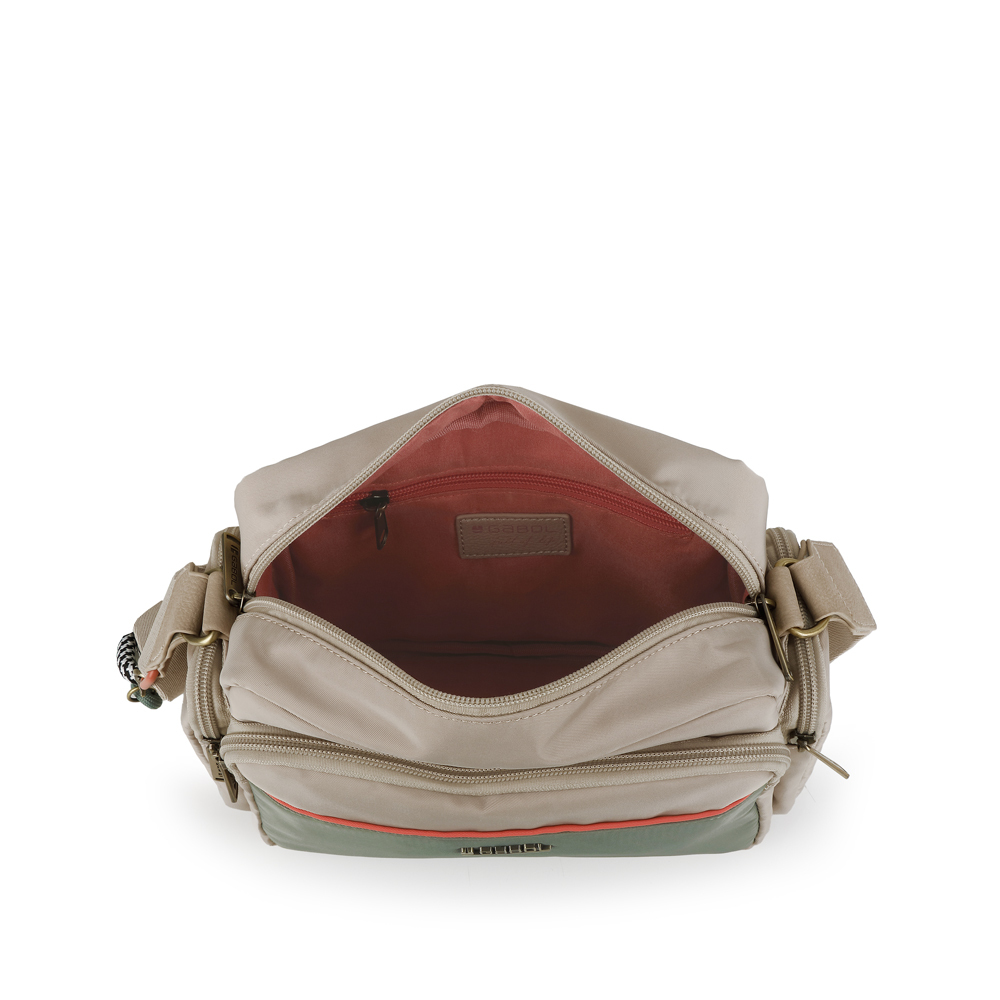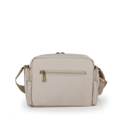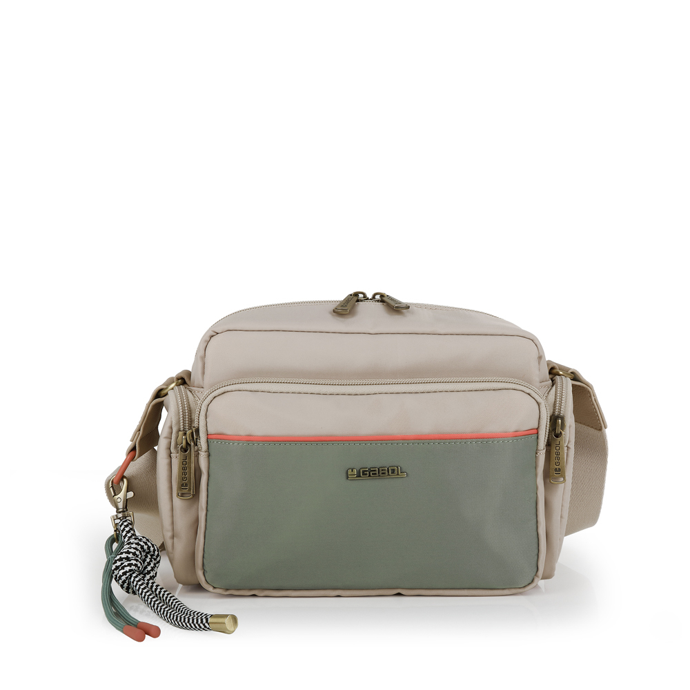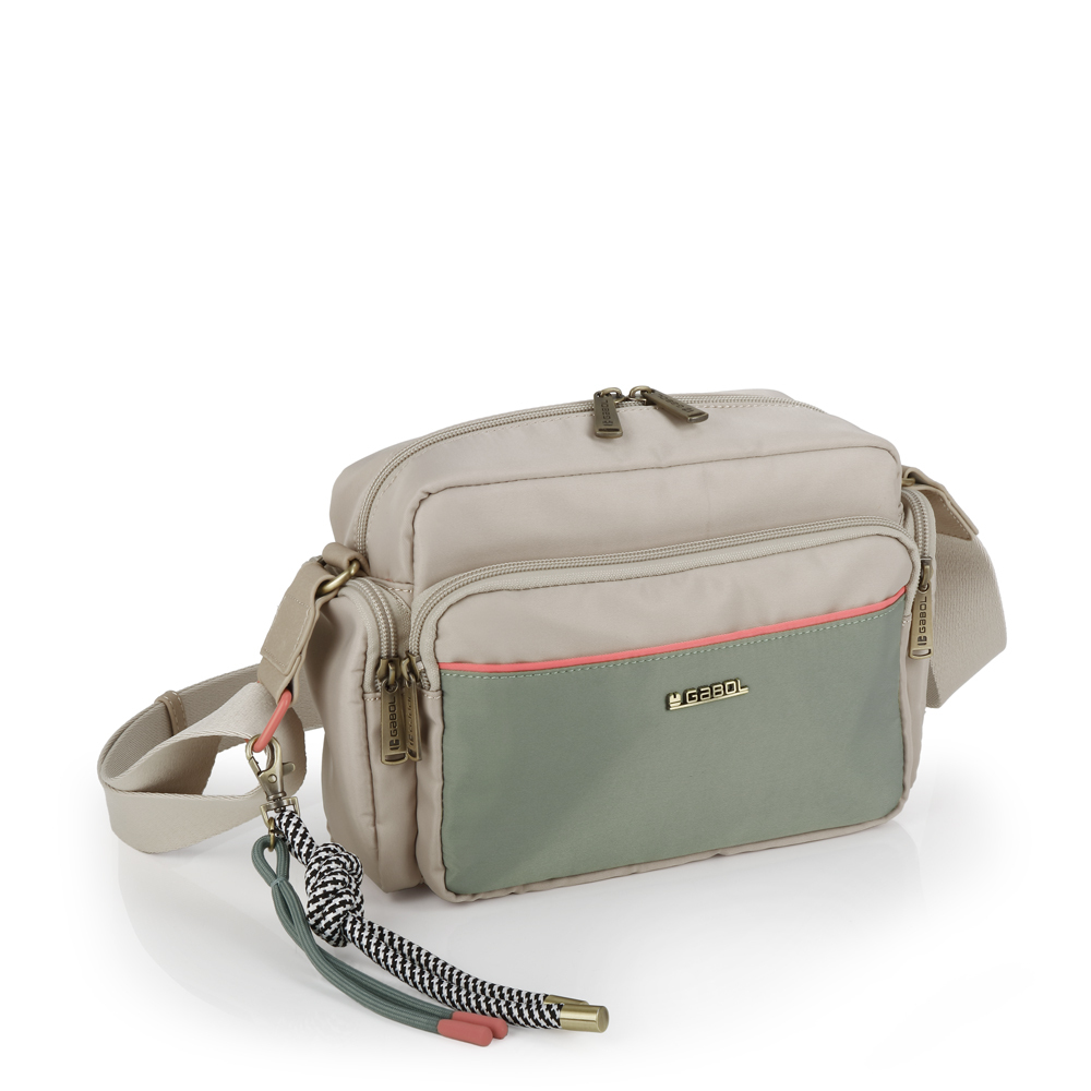 Gabol ženska torba predstavlja vrhunac minimalističke urbane elegancije. Izrađena je od visokokvalitetnog materijala sa specifičnom vodotpornom teksturom, upotpunjenog detaljima od fine sintetičke kože (poliuretana), što joj daje moderan i prefinjen izgled pogodan za sve prilike. Torba nudi izuzetnu funkcionalnost kroz tri odvojene pregrade sa patent zatvaračima: praktičan prednji džep, prostranu glavnu unutrašnjost sa dezeniranom postavom i unutrašnjim organizatorom, kao i dodatni zadnji sigurnosni džep. Široki, podesivi tekstilni remen osigurava maksimalnu udobnost tokom celodnevnog nošenja, dok diskretan metalni logotip na prednjoj strani zaokružuje njenu estetiku. Zahvaljujući svom svedenom dizajnu i izdržljivosti, ovaj model je savršen saputnik koji se lako prilagođava različitim stilovima odevanja, od poslovnih do ležernih varijanti.