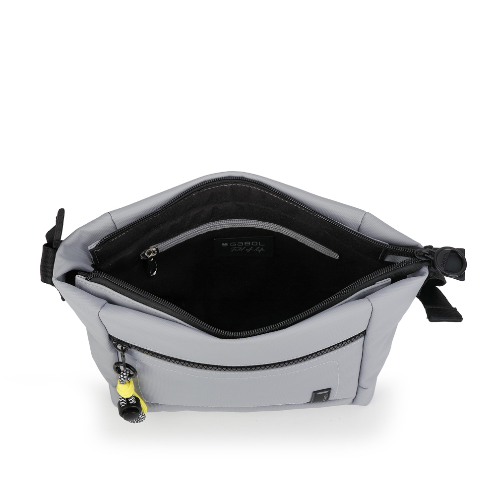 Moderna Gabol torba kombinuje tehničku preciznost i urbanu estetiku u kompaktnom i visoko funkcionalnom dizajnu. Izrađena je od izdržljivog materijala u svetlosivoj nijansi sa kontrastnim crnim patent zatvaračima, čineći je otpornom na svakodnevne izazove gradskog života. Torba nudi optimalnu organizaciju kroz više namenskih odeljaka: prostran glavni deo, upečatljiv prednji džep i diskretan zadnji džep za bezbedno čuvanje dokumenata ili novčanika. Specifičan vizuelni identitet naglašen je dekorativnim priveskom od neon-žutog i dezeniranog kanapa, koji pored estetske uloge značajno olakšava pristup stvarima. Uz široki, podesivi tekstilni kaiš za nošenje preko ramena, ovaj model osigurava vrhunsku udobnost i praktičnost, predstavljajući savršen izbor za savremeni dinamičan stil života.