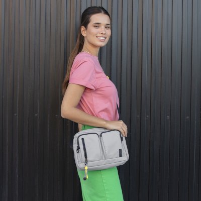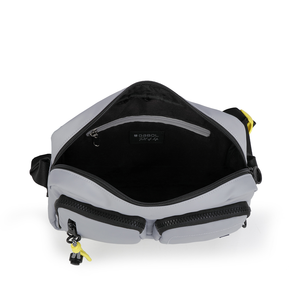Veća i još funkcionalnija, ova Gabol torba predstavlja naprednu verziju urbanog dizajna. Izrađena od izdržljivog, visokootpornog materijala u svetlosivoj boji, dizajnirana je da pruži maksimalan prostor uz zadržavanje modernog, sportskog profila. Torba se ističe sa dva prostrana prednja džepa sa naglašenim crnim patent zatvaračima, dok glavni odeljak i dodatni zadnji sigurnosni džep osiguravaju vrhunsku organizaciju za sve vaše uređaje i dokumenta. Prepoznatljiv neon-žuti privezak sa teksturisanim kanapom daje autentičan vizuelni identitet i olakšava svakodnevnu upotrebu. Sa ojačanim podesivim remenom i unutrašnjim organizatorom, ovaj model je vrhunski izbor za profesionalce i aktivne korisnike koji traže pouzdanu torbu većeg kapaciteta za gradske uslove.