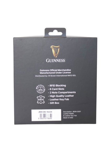 Ekskluzivni Guinness poklon set, predstavlja vrhunsku kombinaciju funkcionalnosti i prefinjenog stila. Novčanik izrađen od 100% prirodne kože visokog kvaliteta nudi superiornu organizaciju sa osam pregrada za kartice, dva prostrana odeljka za novčanice, ID prozorom i namenskom pregradom za kovanice. Maksimalna bezbednost osigurana je integrisanom RFID zaštitom i unutrašnjim džepom sa patent zatvaračem, dok prateći kožni privezak dužine 9 cm savršeno upotpunjuje ovaj autentični set. Zahvaljujući luksuznom pakovanju Official Merchandise linije, ovaj model je idealan izbor za korisnike koji traže dugovečan i estetski besprekoran aksesoar.