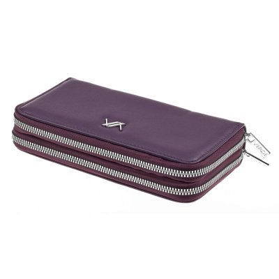 Elegentan ženski novcanik izradjen od ekološke sinteticke kože sa dva zipa. Jedan zip pokriva untutrašnjost gde su pregrade za novcanice i više slotova za kartice a drugi pokriva džep sa rajsferšlusom za sitan novac i dodatne pregrade za licna dokumenta, racune i sl.
