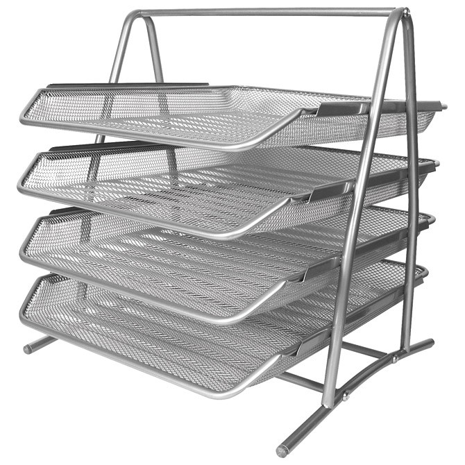 Stalak za spise vodoravni žica 4 police Fornax srebrni