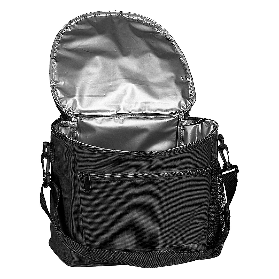 Rashladna torba za hranu i piće • Spoljašnji materijal: 600D poliester • Termo izolacija: EPE pena + PEVA aluminijumska obloga • Čvrsta box konstrukcija • Glavni odeljak sa gornjim rajsferšlusom • Prednji džep sa rajsferšlusom • Bočni mrežasti džep • Podesivi rameni kaiš • Kapacitet: 6 limenki (0,5 l) • Pogodna za rashladne uloške