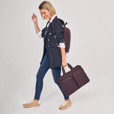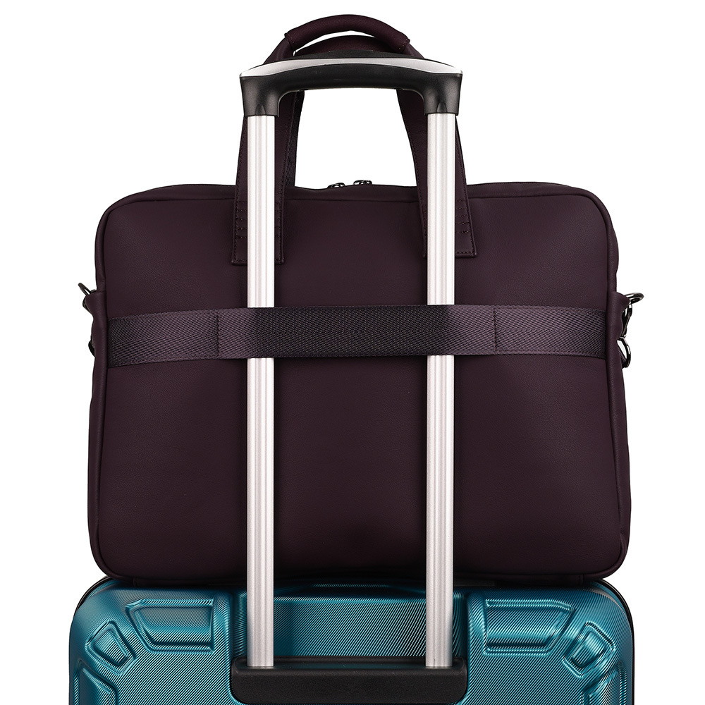 Elegantna i moderna ženska notebook torba. Izrađena od visokokvalitetne veštačke kože, sa "PVC free" oznakom.Sadrži dva unutrašnja odeljka, uključujući i zaštićeni prostor za odlaganje kompjutera 15,6". Na prednjoj strani se nalaze dva odvojena duboka džepa sa rajsferšlusima. Moguća je montaža na ručku kofera.