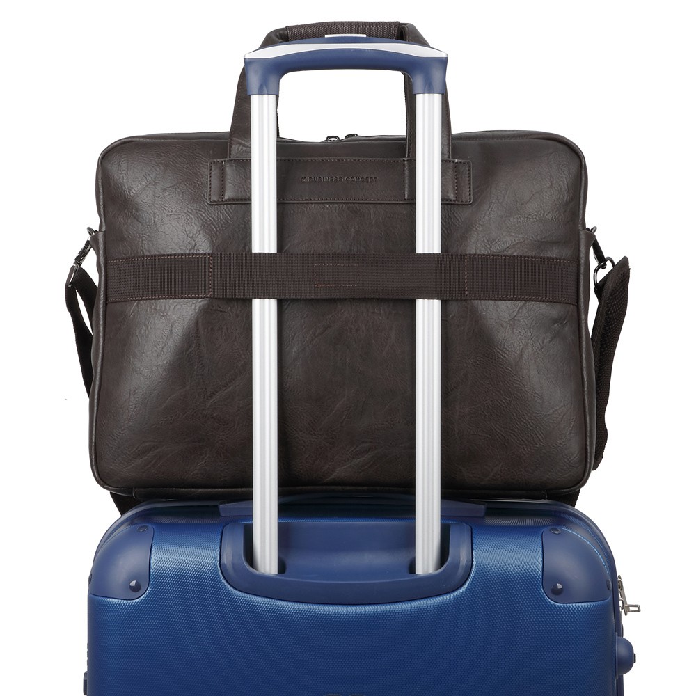 Elegantna poslovna torba sa dugačkom ručkom, izrađena od veštačke kože. Sadrži 2 pregrade: prva pregrada služi za laptop (15,6" ) a druga pregrada za odlaganje dokumenata. Dimenzija:42x31x9 cm, boja: braon.Kapacitet:10,8 l, težina prazne torbe 0,78 kg.