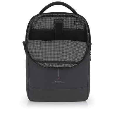 Veoma moderan model ranca od kvalitetnog sintetičkog nepromočivog materijala. Sa prednje strane ranca je pregrada koja se prostire celom dužinom, sa dodatkom zaštitnog kaiša za notebook. Gornji delovi kaiševa su spojeni dodatnom ručkom. Dobra organizacija unutrašnjih džepova garantuje bezednost vaših stvari. Zadnja strana ima dodatni sigurnosni kaiš koji se podešavanjem vezuje oko struka. Dimenzije:31x43x12cm 15,6"