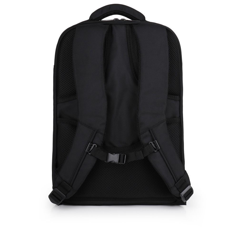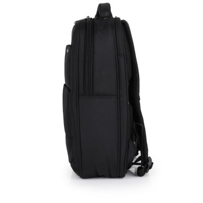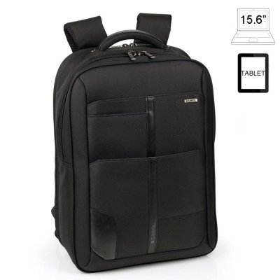 Poslovni ranac sa odeljcima za notebook 15,6" i tablet 10" Ranac se može kačiti na ručku prtljaga radi lakšeg nošenja na putovanju. Kaiševi su podesivi. Materijal: najlon sa detaljima od veštačke kože. Dimenzije: 31x43x13 cm.