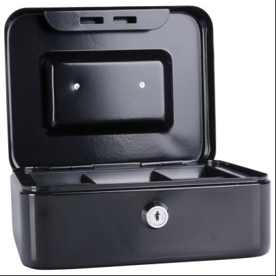 metalna; premazana sjajnim zaštitim slojem; ima 2 ključa; za čuvanje: gotovine, poverljivih dokumenata ili ličnih vrednosti
