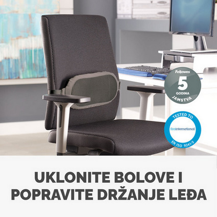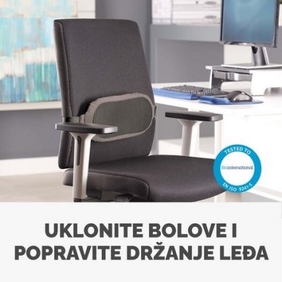 Ako sediš duže vreme, ovaj lumbalni jastuk daje podršku donjem delu leđa i smanjuje naprezanje tokom rada.- Proizvođač: FELLOWES