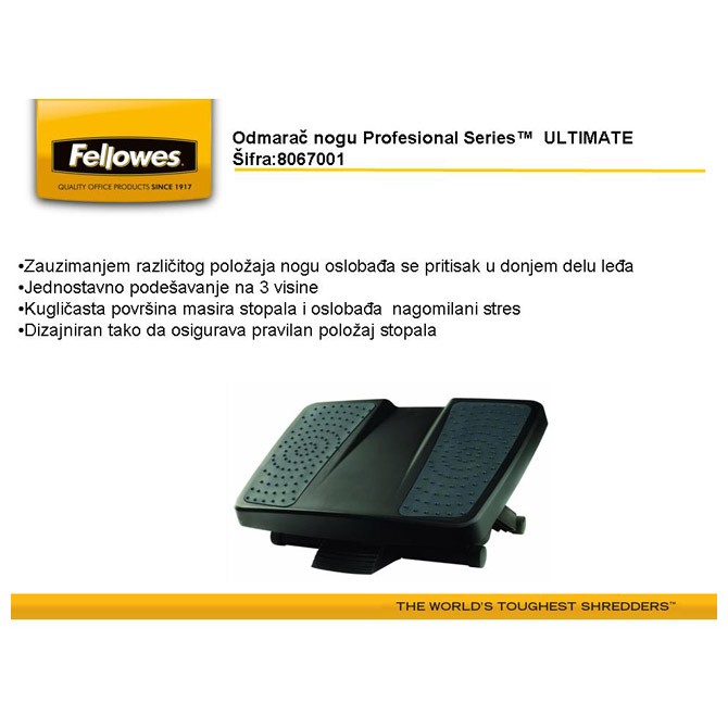 Treba ti Odmarač nogu Ultimate Fellowes 8067001? U Standard online prodavnici te čekaju Ergonomija odličnog kvaliteta. Pogledaj online!- Proizvođač: FELLOWES