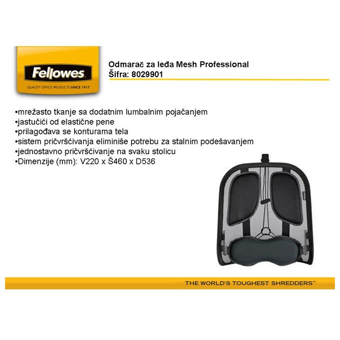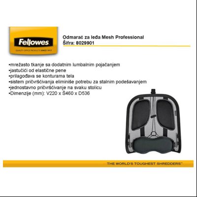 Treba ti Odmarač za leđa Mesh Professional Fellowes 8029901 crni? U Standard online prodavnici te čekaju Ergonomija odličnog kvaliteta. Pogledaj online!- Proizvođač: FELLOWES