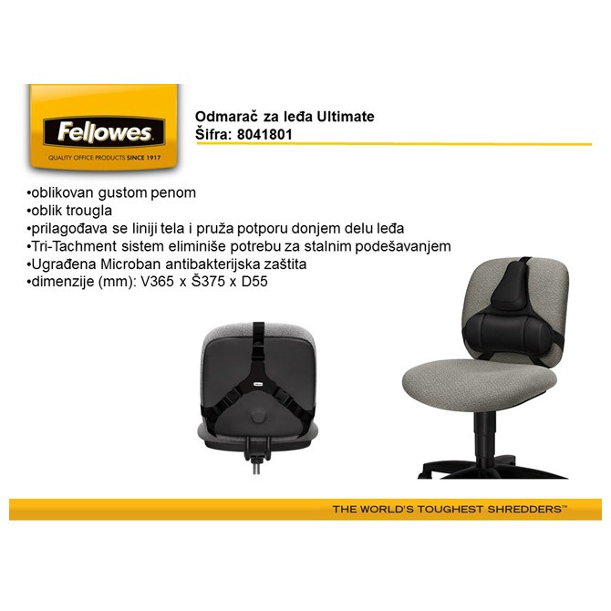 Treba ti Odmarač za leđa Ultimate Fellowes 8041801 crni? U Standard online prodavnici te čekaju Ergonomija odličnog kvaliteta. Pogledaj online!- Proizvođač: FELLOWES