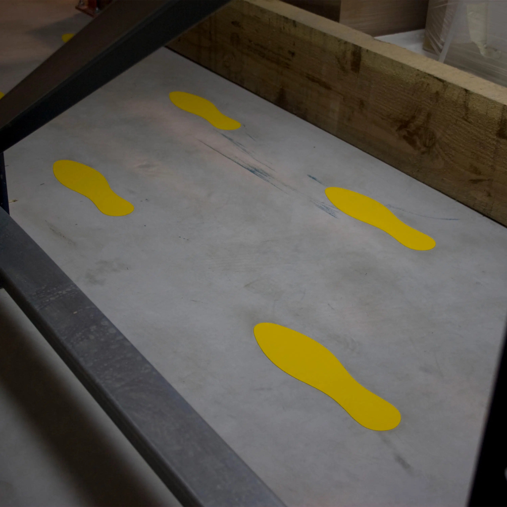 Za sigurno i trajno obeležavanje u unutrašnjem radnom prostoru. Otporni na habanje od sredstava unutrašnjeg transporta. Debljina 350my.