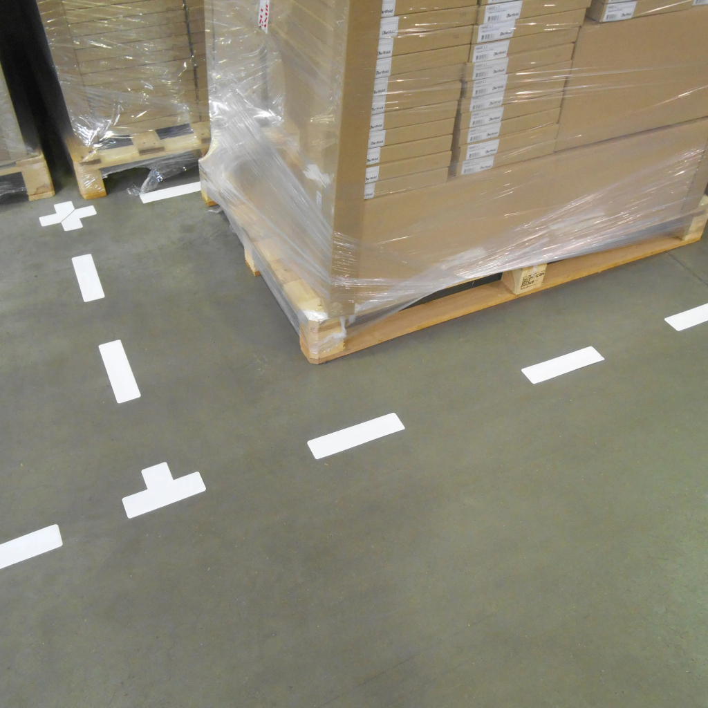 Za sigurno i trajno obeležavanje u unutrašnjem radnom prostoru. Otporni na habanje od sredstava unutrašnjeg transporta. Debljina 350my.