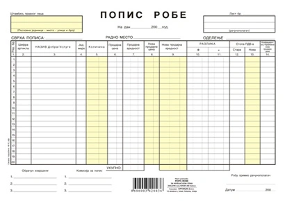 Popis robe sa nivelacijom za evidentiranje relevantnih podataka o dobrima/uslugama.