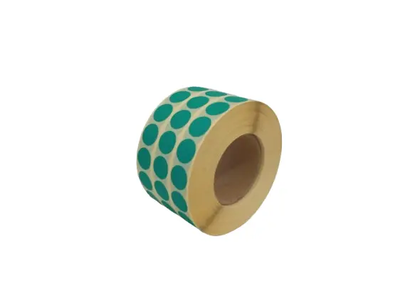 Tražiš zelene samolepljive etikete na rolni? Ze tebe imamo zelene etikete prečnika 13mm, na rolni sa 6429 komada. Poruči danas!- Minimalna kolicina: 6429