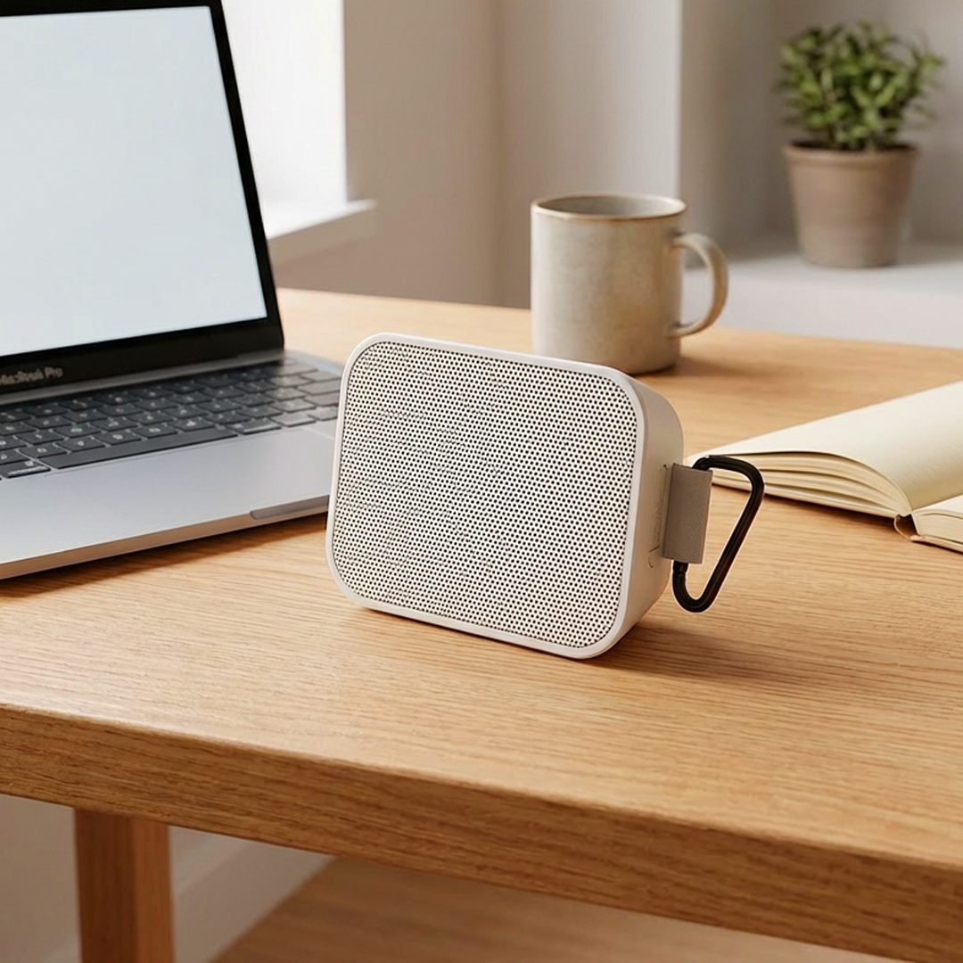 Bežični zvučnik snage 5 W, kompaktan i praktičan promotivni proizvod za svakodnevnu upotrebu u kancelariji, kod kuće ili u pokretu. Zahvaljujući ručki za nošenje i jednostavnom formatu, pogodan je kao poslovni poklon koji omogućava dugotrajnu vidljivost brenda kroz redovnu upotrebu. Isporučuje se u poklon kutiji sa uključenim Type-C kablom za punjenje.
