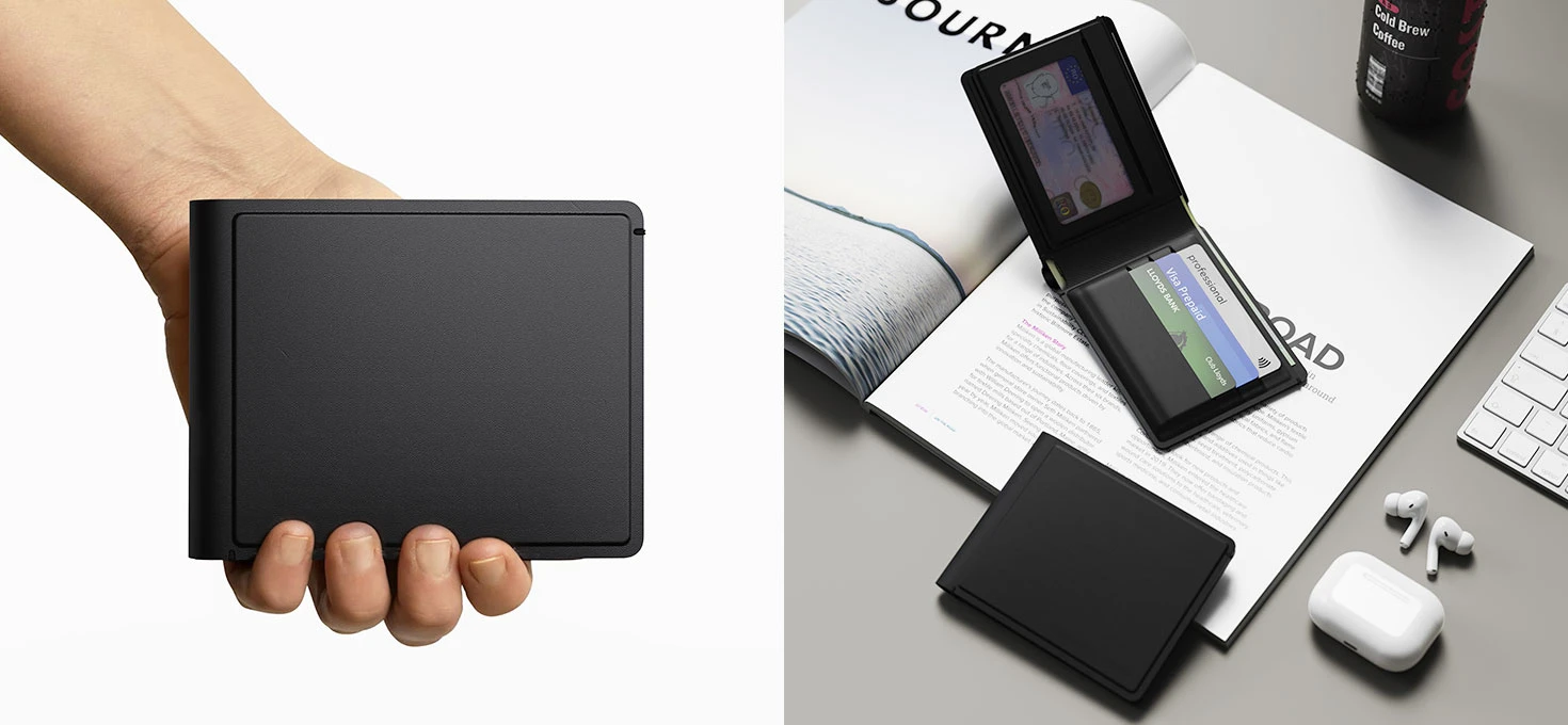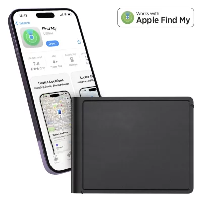 Kompatibilno sa Apple aplikacijom „Find My“, praćenje vaših predmeta širom sveta, koristite zvučni signal za lociranje vašeg uređaja kada je u blizini, sa bežično punjivom baterijom, prostor za odlaganje novca i kartica