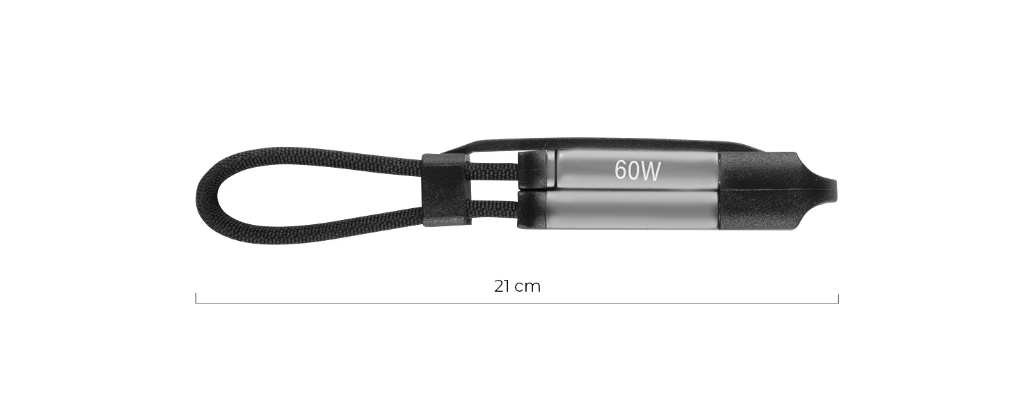 USB / Type-C kabl sa funkcijom priveska za ključeve. Kabl za punjenje poseduje i opciju prenosa podataka (Type-C ka Type-C). Ulaz je Type-C, a izlazi su USB-A i Type-C. Maksimalna snaga punjenja je 60 W, uz opciju brzog punjenja. Koristi USB Power Delivery (PD) protokol. Proizvod dolazi u poklon kutiji.
