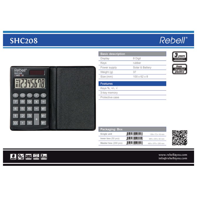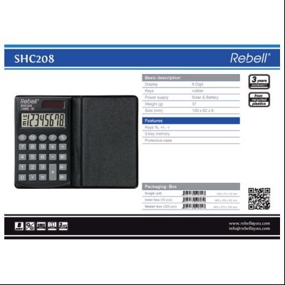 - Naziv Kalkulator džepni 8mesta sa preklopom Rebell RE-SHC208 BX crni