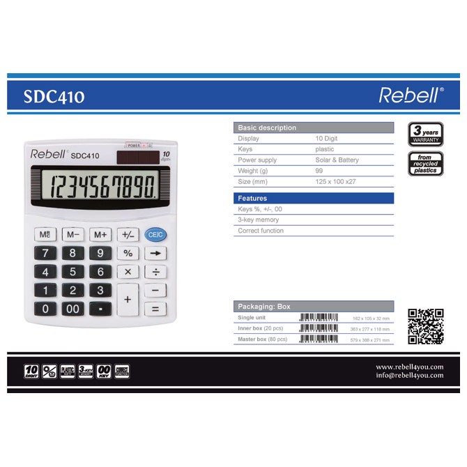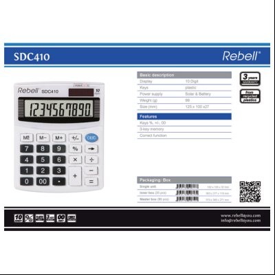 • Naziv Kalkulator komercijalni 10mesta Rebell RE-SDC410 BX beli