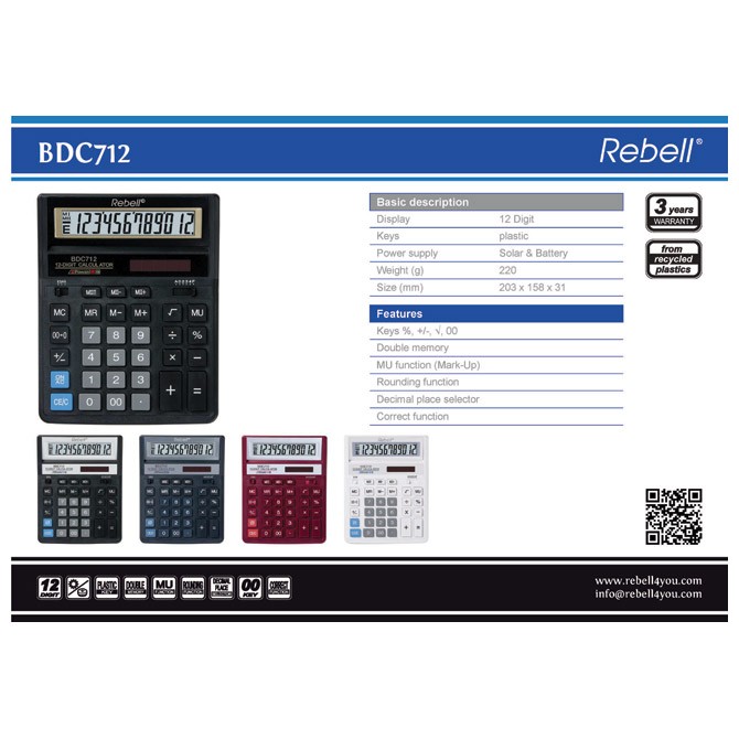 - Naziv Kalkulator komercijalni 12mesta Rebell RE-BDC712BK BX crni