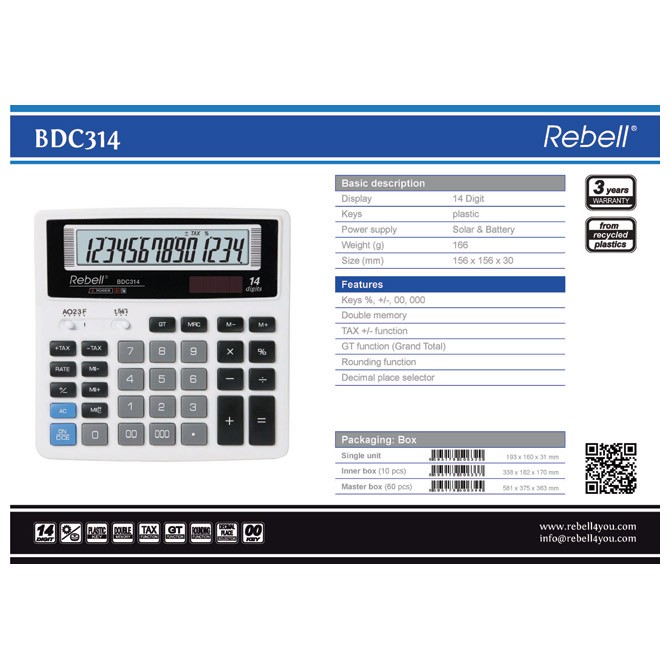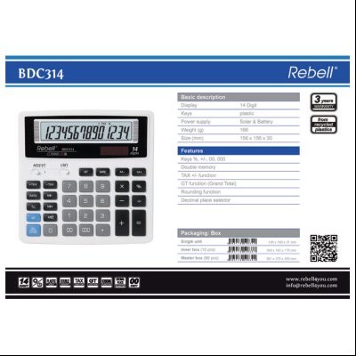 • Naziv Kalkulator komercijalni 14mesta Rebell RE-BDC314 BX beli