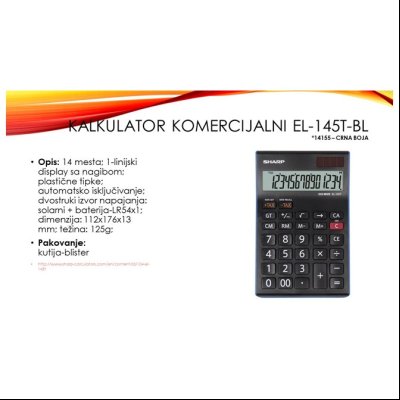 - Naziv Kalkulator komercijalni 14mesta Sharp EL-145T-BL crni blister