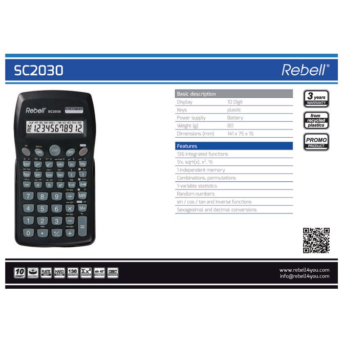 - Naziv Kalkulator tehnički 10mesta 136 funkcija Rebell RE-SC2030 BX crni