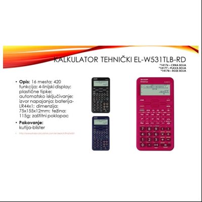 - Naziv Kalkulator tehnički 16mesta 420 funkcija Sharp EL-W531TLB-BK crni blister