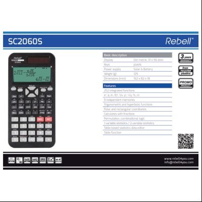 - Naziv Kalkulator tehnički rezolucije 31x96 tačaka 252 funkcije Rebell RE-SC2060S BX crni