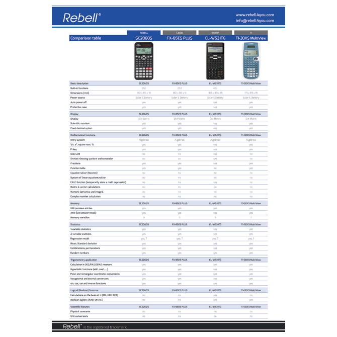 Treba ti Kalkulator tehnički rezolucije 31x96 tačaka 252 funkcije Rebell RE-SC2060S BX crni? U Standard online prodavnici te čekaju DIGITRONI odličnog kvaliteta. Pogledaj online!- Proizvođač: REBELL