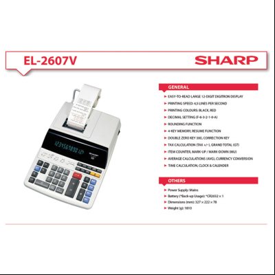 Računska mašina 12mesta sa adapterom Sharp EL-2607V siva