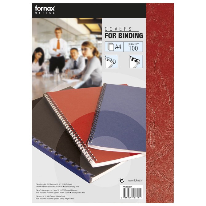 - Naziv Korice za spiralno koričenje 250g karton A4 pk100 Fornax 1162 crvene